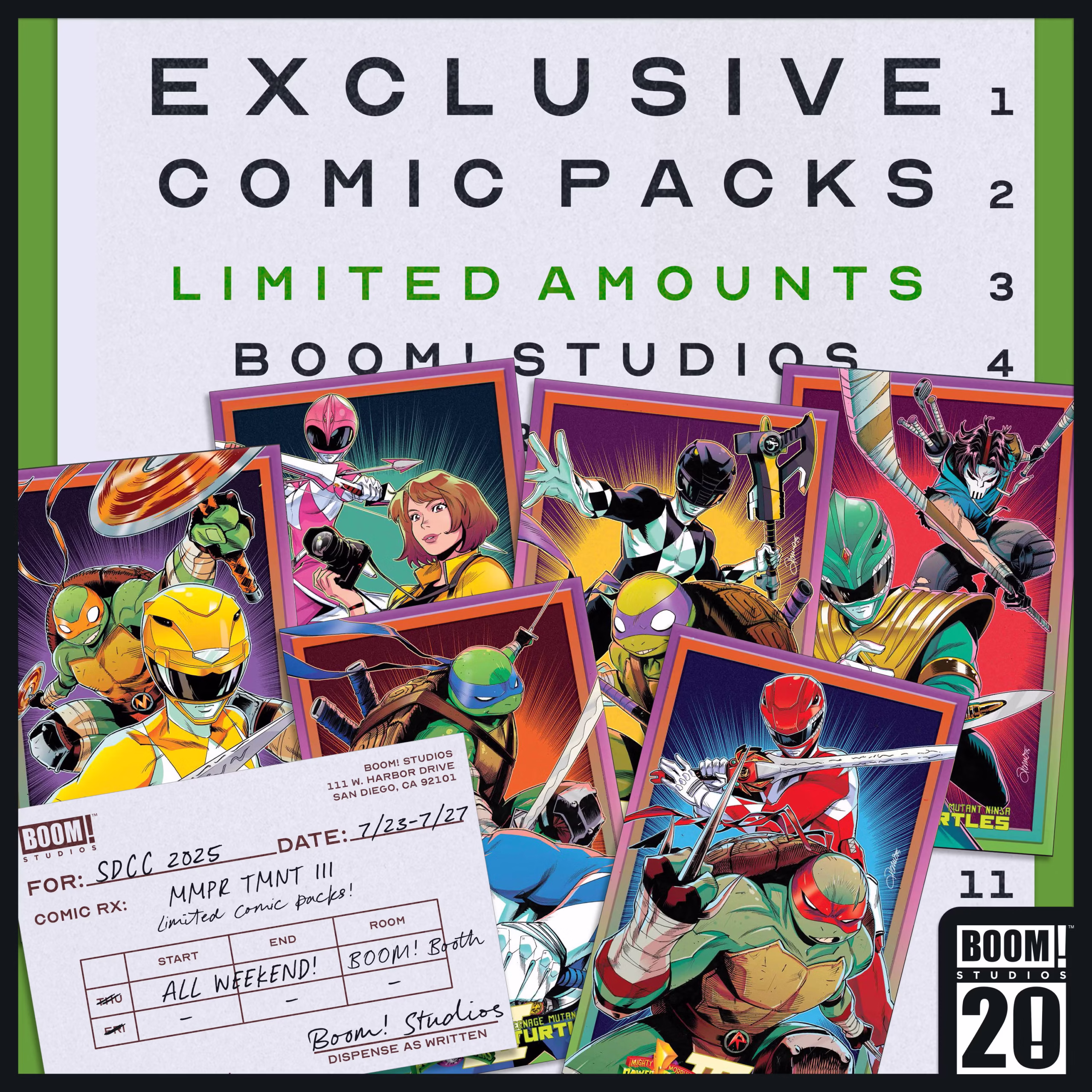 Mighty Morphin Power Rangers/Teenage Mutant Ninja Turtles III #1 Ashcan Comic Pack Exclusives. The 2-comic packs included two random covers out of six total possibilities, illustrated by the incredible Alessio Zonno.